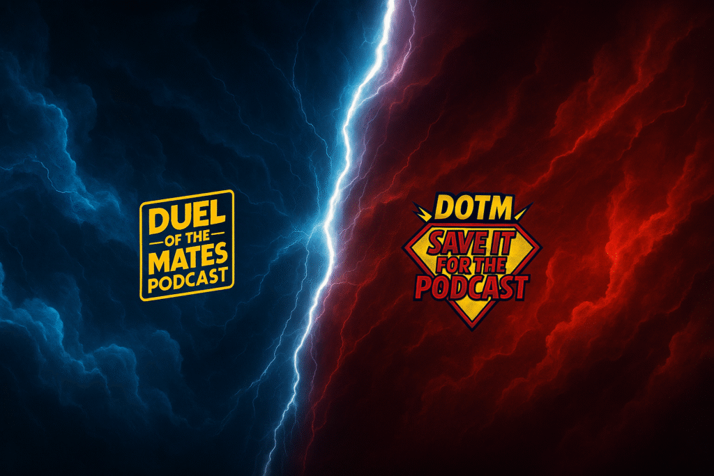 AI backdrop created for our Podcast using our two series logos as foreground and prompts using ChatGPT and Midjourney