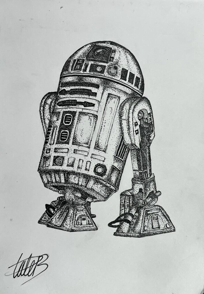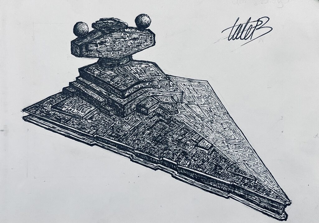 Star Destroyer: Fineline pens using geometric shapes and line density for shading